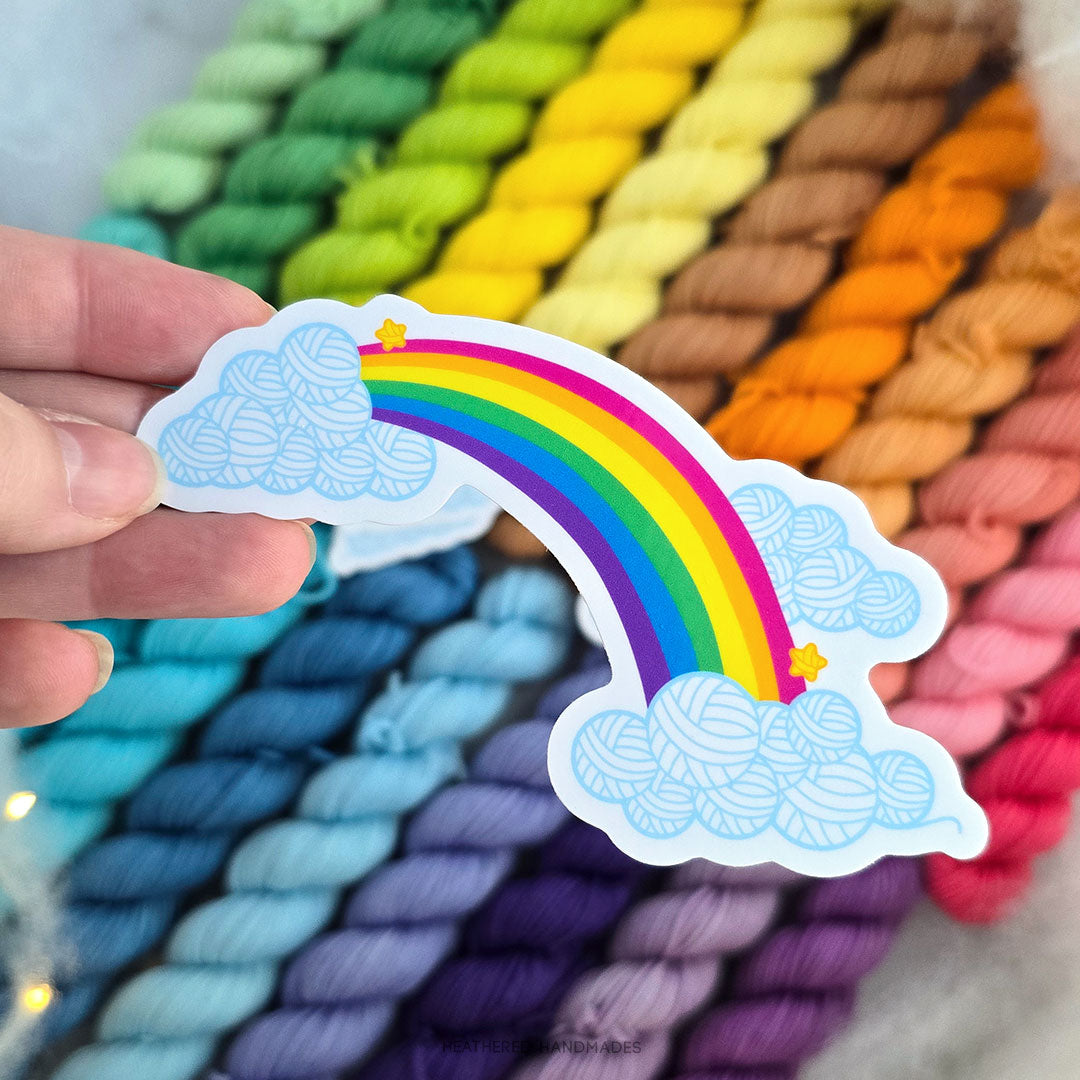 Yarn + Rainbow Sticker: approx. 3" tall & 4.5" wide die cut vinyl sticker.